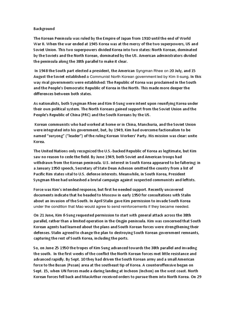 So after World War II a decision was made to divide Korea rather than to unify it. The 38th parallel separated the Korean peninsula creating what we know today […]. Many solutions have been considered as an alternative to a mass war, but none of the solutions have been executed, korea essay. This impending nuclear war would result in widespread catastrophe. This threat needs to be dealt with […]. America has a long background throughout history of imperialism and interfering in conflicts across the globe; from the Spanish American War in the Philippines to the Vietnam War, America constantly finds itself in conflict.